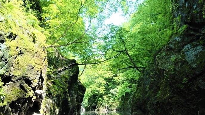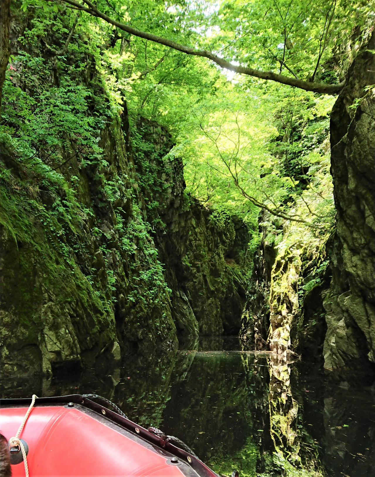 ながい百秋湖(長井ダム)にある『三淵渓谷』。ボートでしか見ることができない神秘的な空間を1時間かけて巡ります。