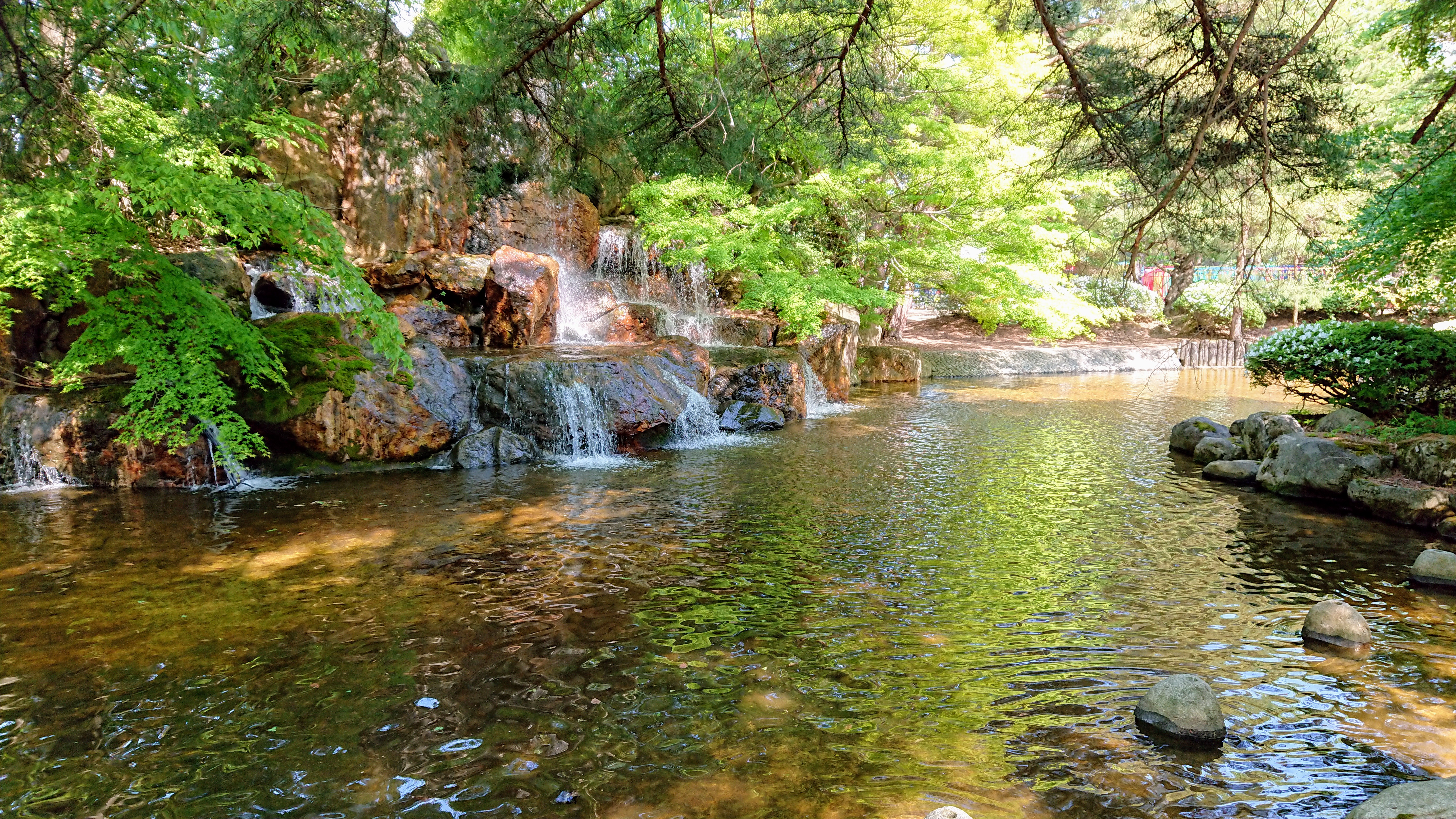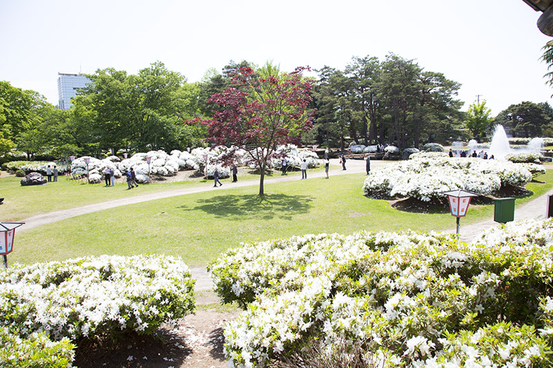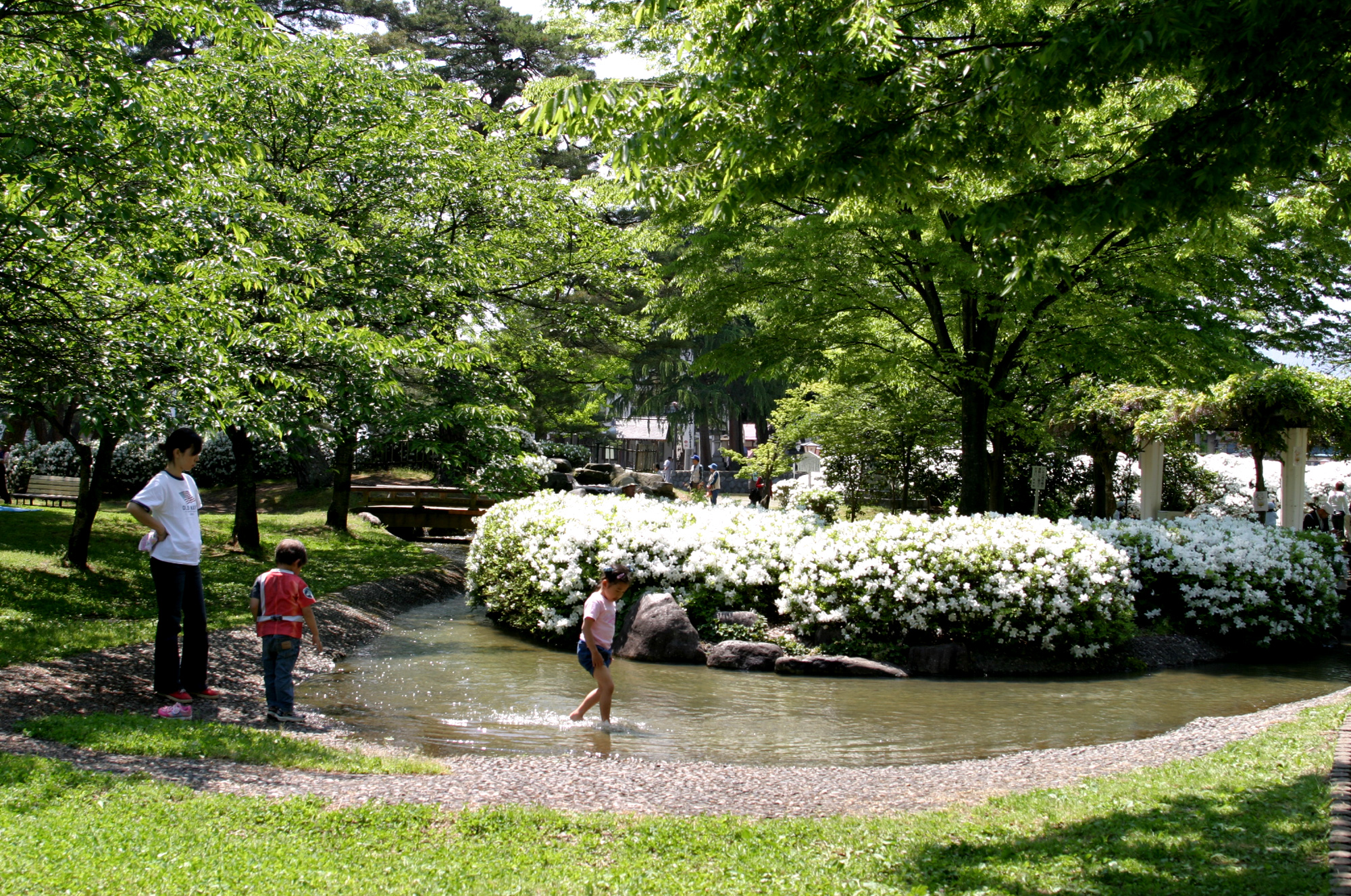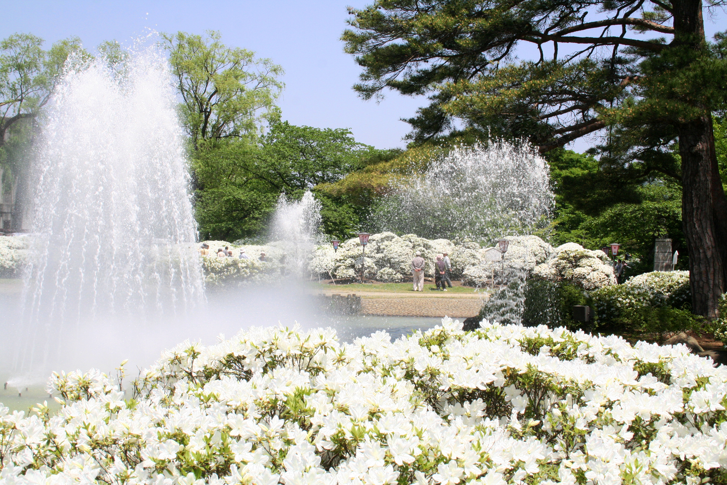 6ヘクタールの広い園内には、つつじ以外にも様々な樹木が植えられ、噴水のある池や滝を結ぶせせらぎや、園路が張り巡らされ、子供向けの遊具があり、新緑から紅葉の季節まで、観光客のみならず市民の憩いの場となっています。