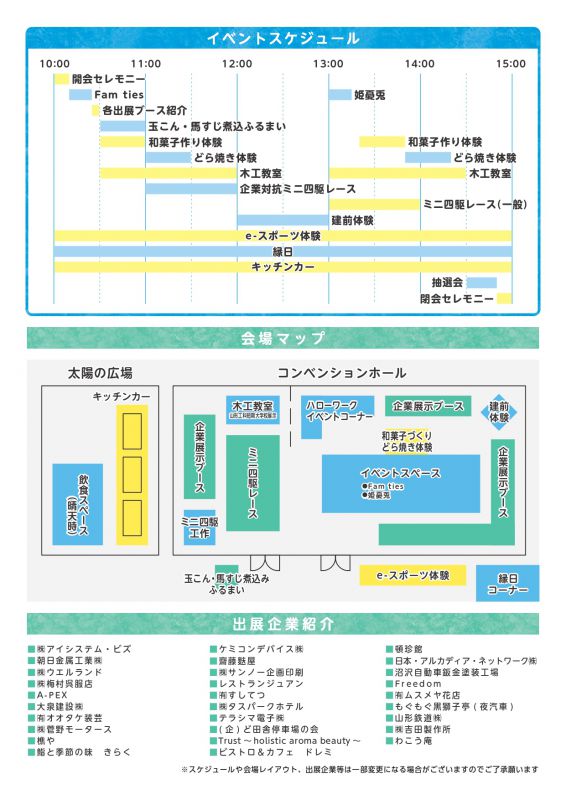 市内の製造業からサービス業まで、多彩な事業所が出展し、長井の魅力と可能性を紹介します。