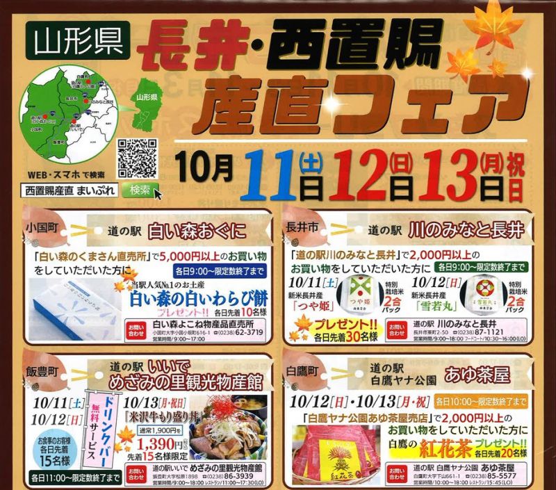 期間中、長井・西置賜の道の駅ではプレゼント企画やお得なサービスをご準備!