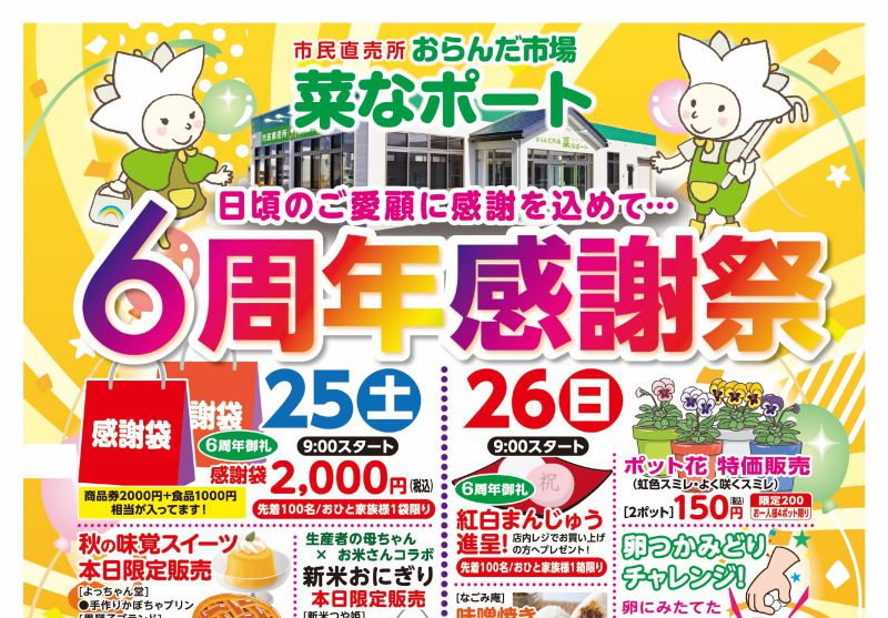 【菜なポート6周年祭】10月25日(土)・26日(日)開催