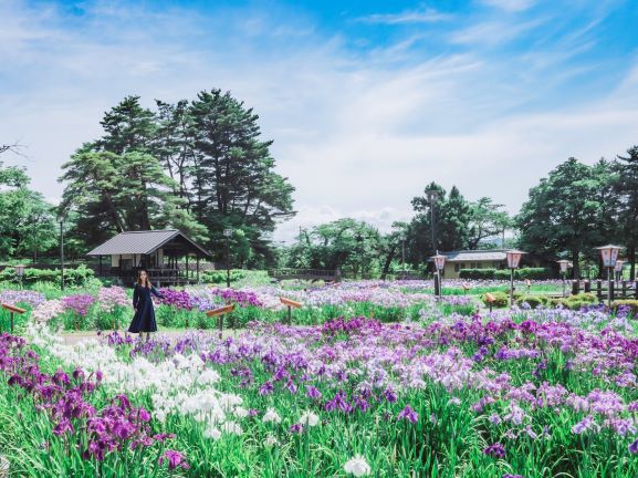 白や紫の気品ある優しい花が咲くあやめ公園