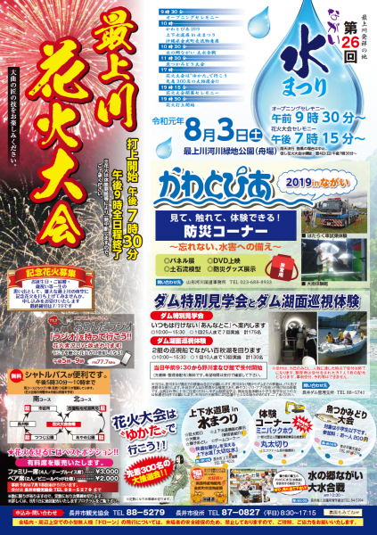 令和元年「ながい水まつり/最上川花火大会」について
