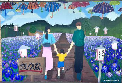 今年、あやめ公園内に長井北中学校総合文化部制作の大型看板を設置しました。(あやめ会館隣、無料休憩所)
