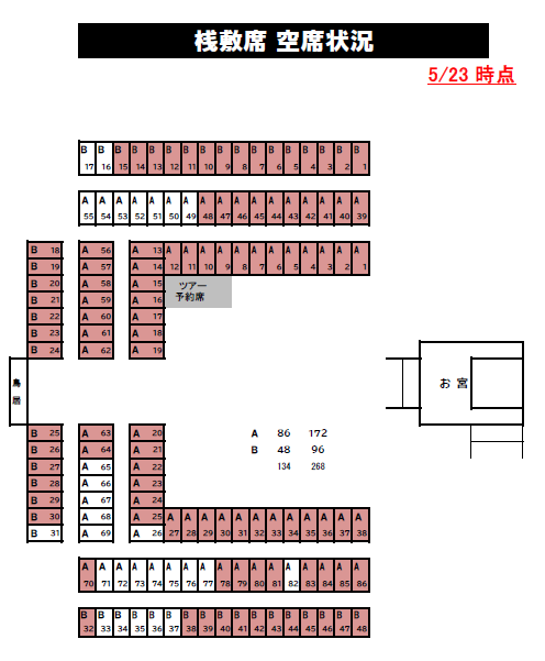桟敷席空き状況【5月23日時点】第35回 ながい黒獅子まつり