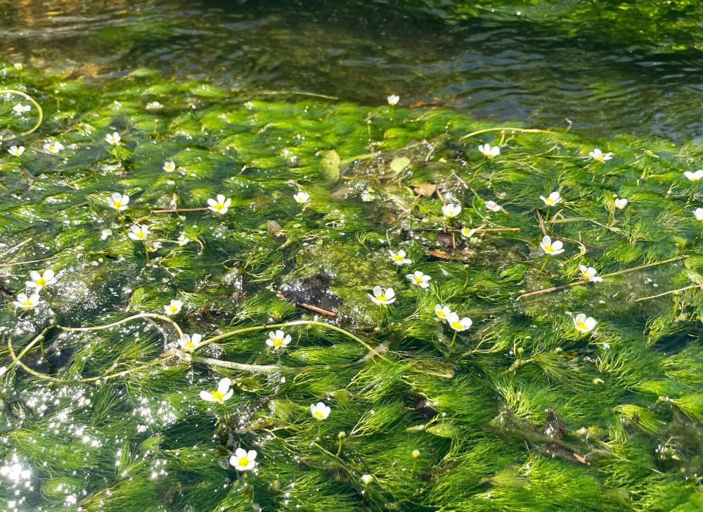 清流に咲く小さな花 ― 「梅花藻」が咲き始めました。
