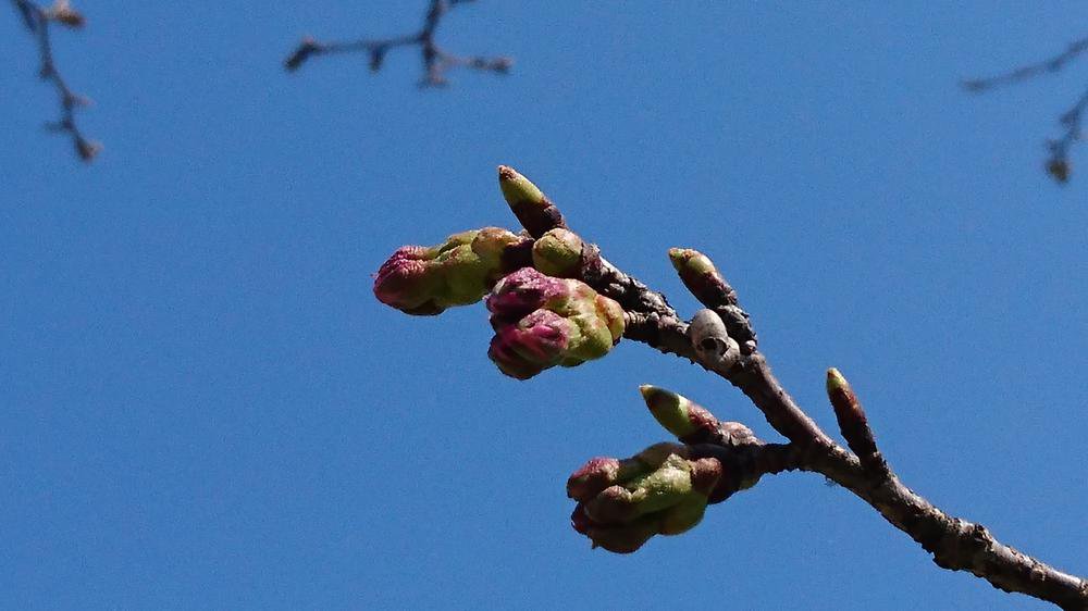 暖かい日が続き、蕾が大分赤くなってきました。この分だと10日(日)頃開花宣言かな?明日からの天候・気温次第ですが!