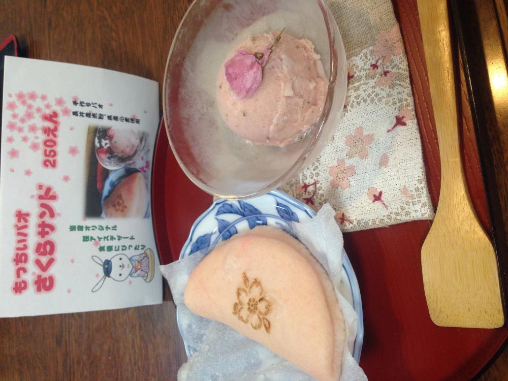 あやめそば舟越さんでもっちいパオという新発売のデザートをいただいてきました〜^o^一日限定10個で値段は何と250円??なかなかのボリュームなので、お得感がありましたよ!米粉を使った温かいもちもちパオで、ほのかに桜の香りのするアイスをはさむととっても美味しいですよ。そばアレルギーが気になるお子さんと一緒でも安心の一品ですな♪( ´▽`)
