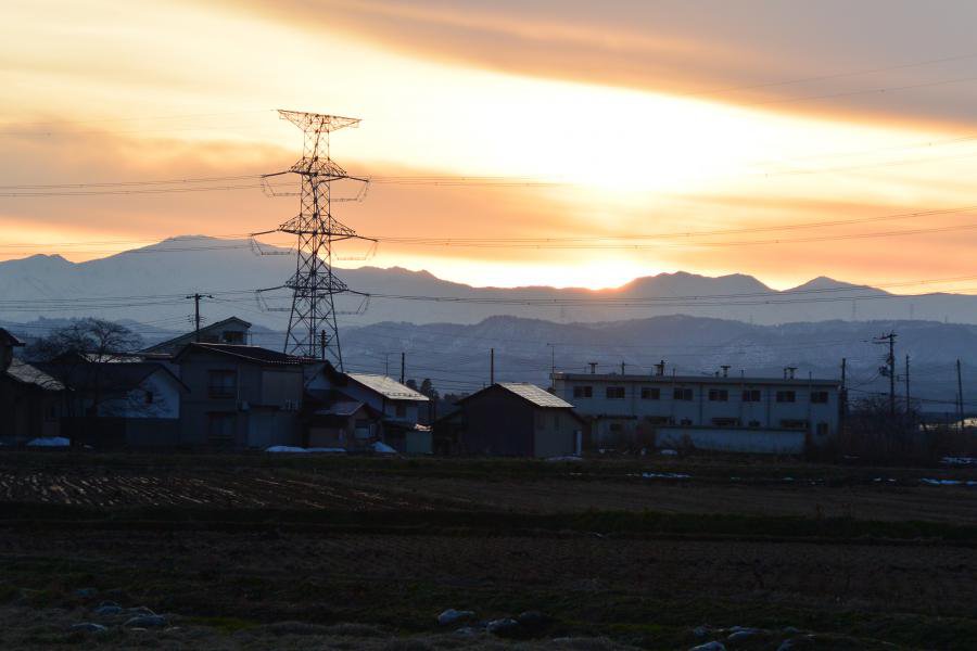 午後4時すぎ、太陽は予想よりもはるかに南の飯豊連峰の向こう(南西方向)に沈んだ。