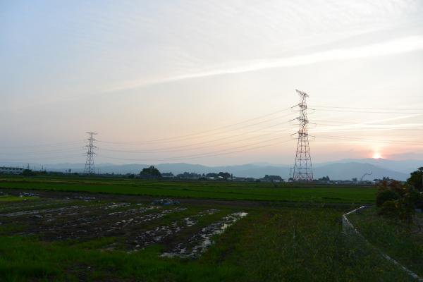 今年の夏至(6/21)はあいにくの天候(雨⇒曇)だったが、2日後曇⇒晴ときれいにはれ上がり、夕日を観測することができた。