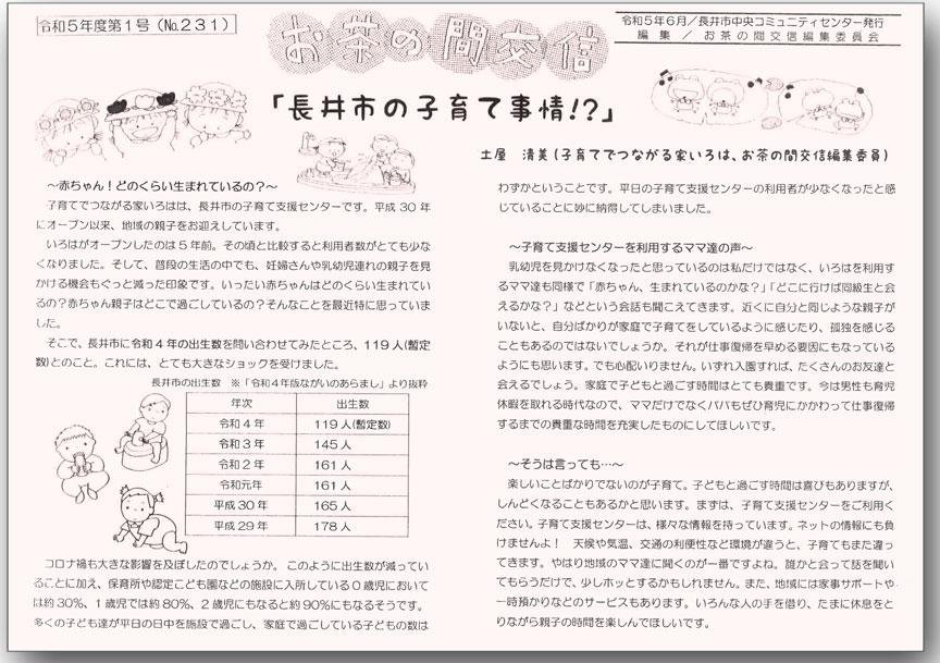 ☆お茶の間交信 令和5年度 第1号(No.231)を発行しました