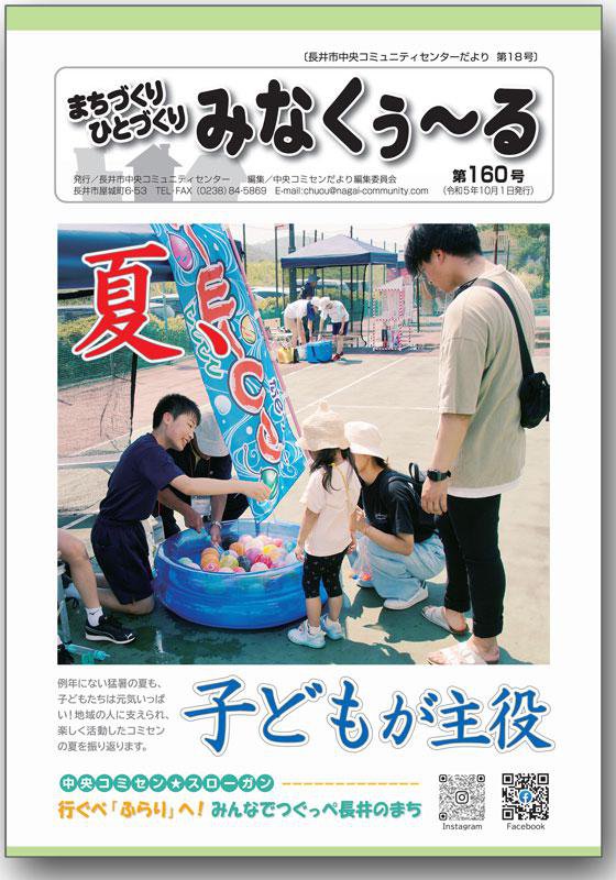 長井市中央コミュニティセンターだより「みなくぅ〜る」第160号を発行しました。「子どもが主役」になって活躍した夏の事業を中心に、コミセンの活動を紹介しています。