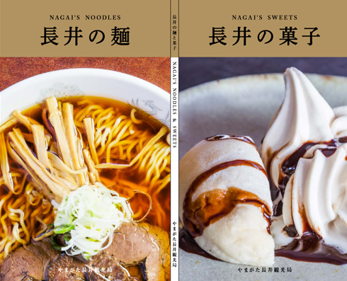 「ながいの麺処」と「ながいの甘味処」が一気にチェックできる本、「長井の麺・長井の菓子」は好評販売中です!
