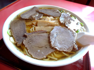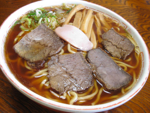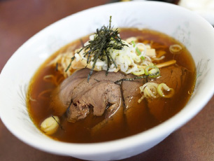 馬肉と豚肉のコラボチャーシューが優しい風味のスープとベストマッチ。中太のストレート麺の口当たりは、どこか懐かしくて新しい。冷丼(冷たいラーメン)発祥の店とも云われている。
