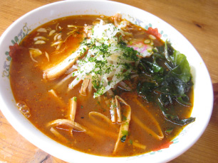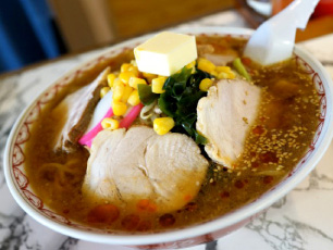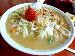 市内で唯一の中細縮れ麺は奥様の手揉み麺。縮れ麺特有のスープの持ち上げ具合が最高!なんばんみそ中華と白みそ中華が人気を二分する。わかめラーメンも人気。 -