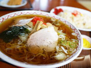 セットメニューの豊富さは市内トップクラス。ラーメンと食べ合わせたい様々なご飯類はミニでもレギュラーサイズ級。スタンダードなラーメンだからこそ食べ合わせを楽しめる。