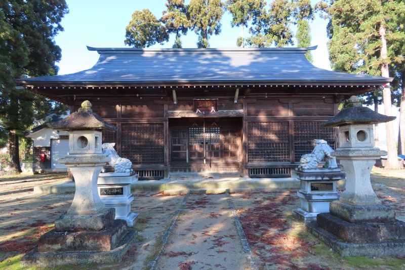 天喜年中(1053〜)に源頼義が造ったといわれています。鎌倉の鶴岡八幡宮を勧請し、館に建て、若宮八幡とよばれました。明治42年(1909)に三嶋、飯綱、羽黒を合祀しました。例祭には演芸、芝居、カラオケ大会でにぎわい、獅子舞と神輿が地区内を巡ります。