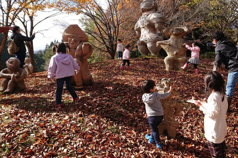 古代の丘では、忠実に拡大・復元されたたくさんの土偶が設置された「土偶広場」や、縄文時代の復元住居等を見学することができる「長者屋敷遺跡公園」など様々な体験施設や野外展示施設があり、キャンプなど家族連れで賑わいます。