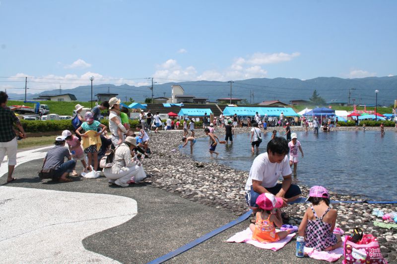 8月の第一土曜日には「ながい水まつり・最上川花火大会」の主会場として、多くの来場者でにぎわいます。